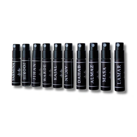 - Kajal Discovery Set #1 to nowoczesny zestaw 10 próbek po 2 ml – od zapachów orientalnych po eleganckie kompozycje unisex