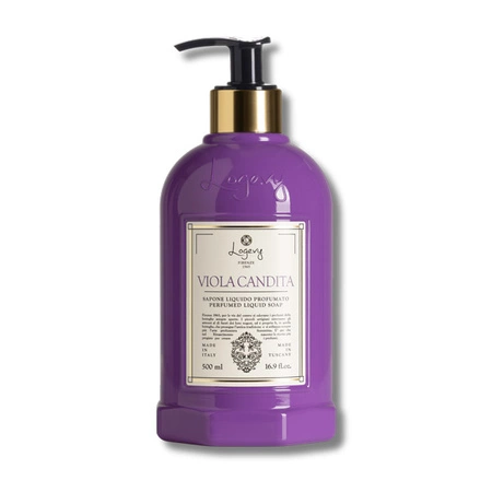 - Eleganckie mydło w płynie o aromacie kandyzowanego fiołka. Oczyszcza, nawilża i pozostawia skórę miękką oraz subtelnie pachnącą.
