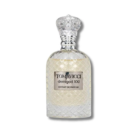 - Tomavicci Demigod XXI Pour Homme to męska kompozycja z miętą, kardamonem i białą szałwią, sercem róży tureckiej i irysa oraz bazą z wanilii, ambry, cynamonu, drzewa sandałowego i piżma.