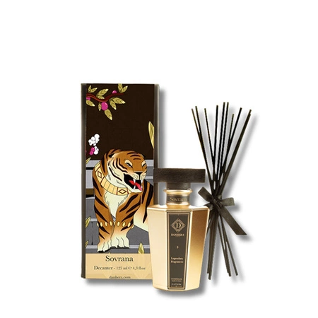- Luksusowy dyfuzor Danhera Sovrana Decanter Gold Small (125 ml) w złotej oprawie. Orientalna kompozycja żywic, wanilii, cedru i nut przyprawowych. Elegancki akcent zapachowy premium do nowoczesnych wnętrz.